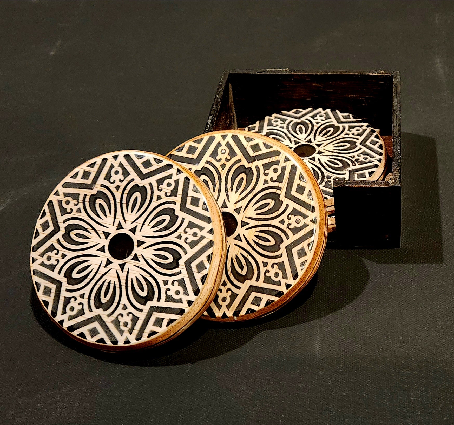 Wood & Resin Mandala Coaster Set with Custom Box #7